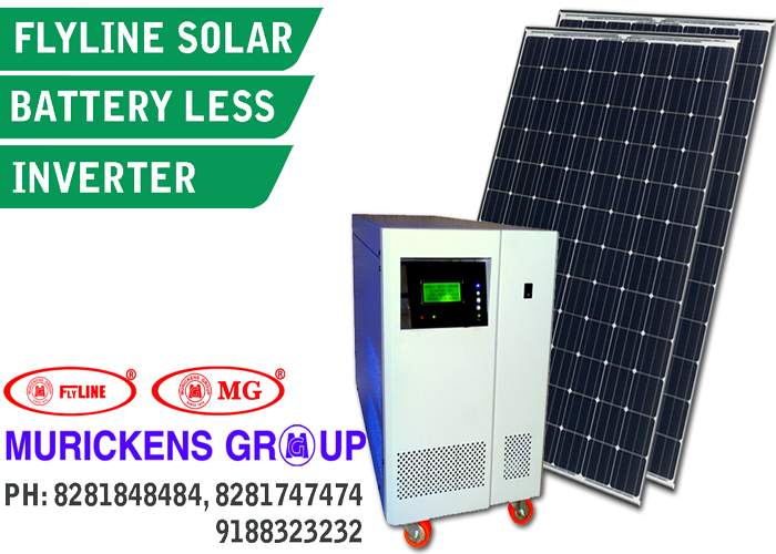 In the case of conventional Grid Tied Inverters which are working without batteries, we can’t use even the available solar power during power failure and its installation requires prior permission and approval from KSEB. Flyline solar grid sharing system is an ideal for a category of power consumers like educational institutions, offices, shops etc, use a major percent of their total power consumption during day time. Our newly introduced Flyline battery less solar/mains compensation system is ideally suited for such consumers. This system has the advantages of ‘no battery’ over the conventional solar inverter system and ‘available solar power can be used’ over the grid tied inverter system.